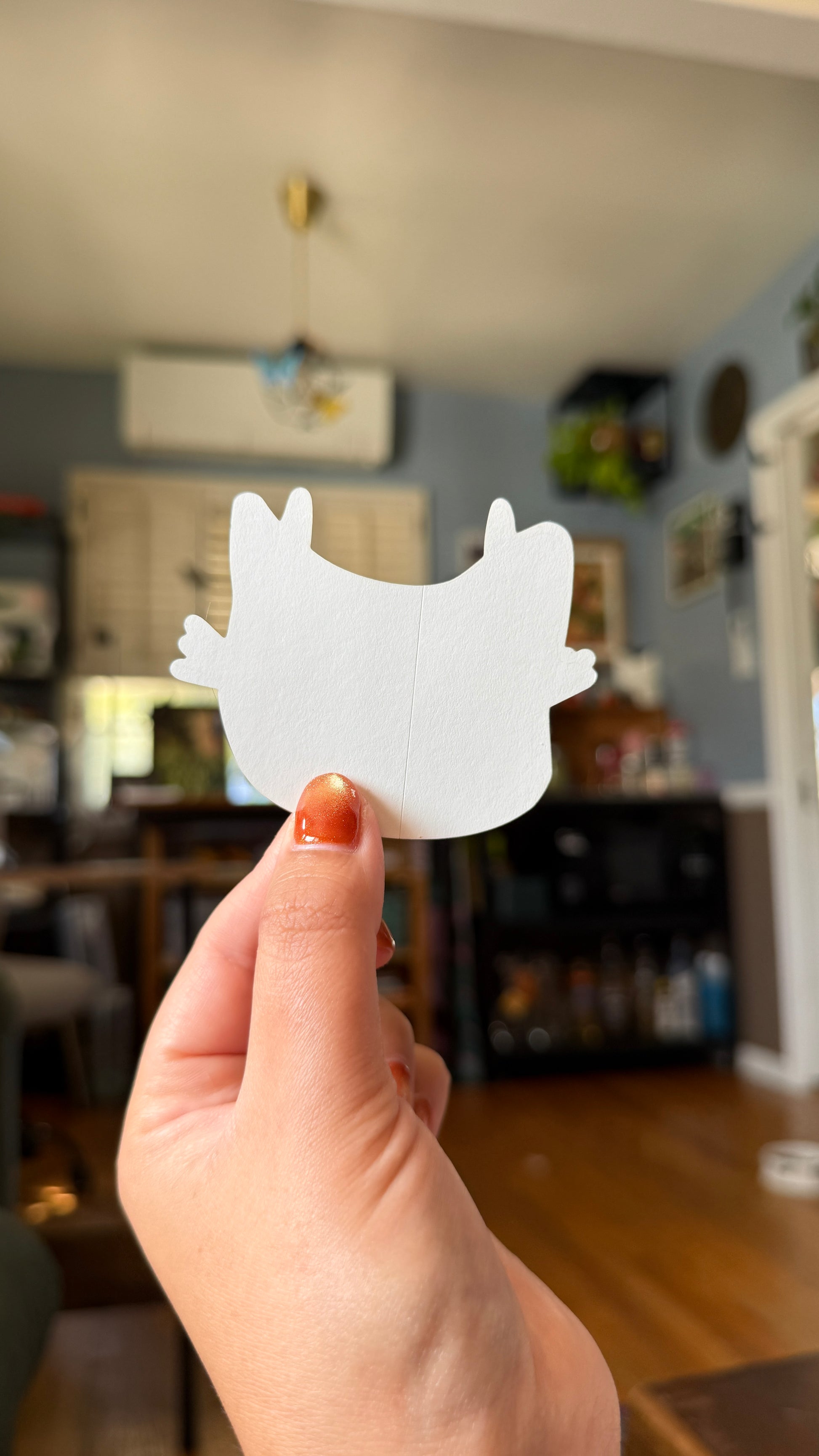 This lil brown kitty is listening to the devil on her shoulder today. Watch out world! 3 x 2.48 Glossy Die Cut Sticker